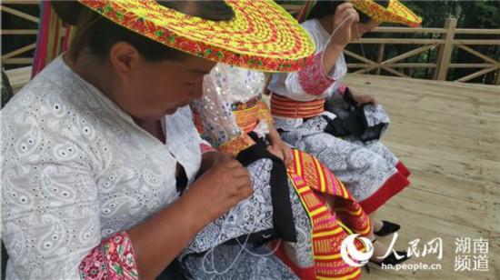 瑶族妇女正在制作花瑶挑花。程鹏伟 摄
