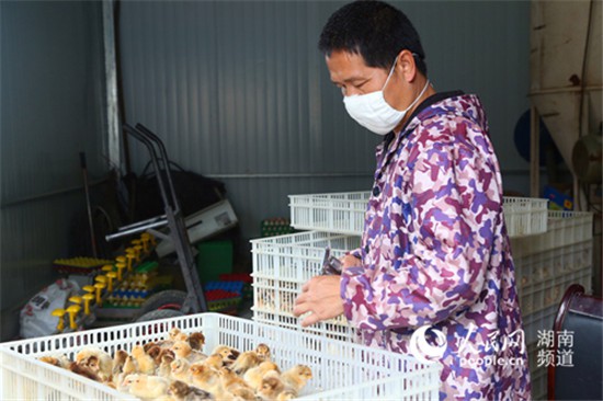 2016年,听说浏阳有一位养鸡养蜂能人袁风格后,工作队三次登门求教。一次次地软磨硬泡下,袁风格终于答应来村里发展养鸡产业。考虑到贫困户的抗风险能力,采取“公司负责提供鸡苗、饲料、防疫和销售,贫困户只需按要求操作,每羽固定收益4元”的扶贫产业培育模式。
